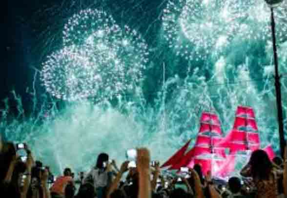 또 하나의 하이라이트는 붉은 돛 축제(Алые паруса, Scarlet Sails)입니다. 이 행사는 고등학교 졸업생을 축하하는 대규모 퍼포먼스로, 6월 하순에 네바 강에서 열립니다.